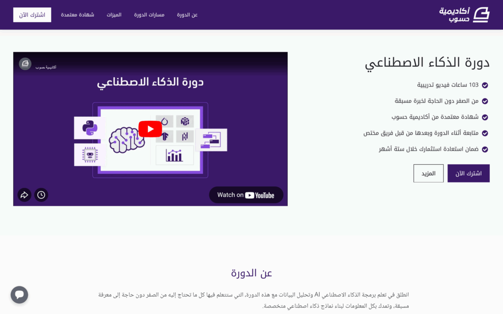 الآن، يتبقى اختيار مسار عملي موثوق لإتقان هذه المهارات، والتعمق أكثر في الذكاء الاصطناعي. دورة الذكاء الاصطناعي من أكاديمية حسوب تعطيك كل ما تحتاج تطبيقه عمليًا، بدءًا من أساسيات لغة بايثون، علم البيانات والتعلم الآلي، إلى دمج وتطبيق أشهر النماذج الجاهزة والواجهات البرمجية والمكتبات. هذه دورة تعطيك خريطة كاملة لتصبح مطور ذكاء اصطناعي قادر على تقديم خدمات احترافية.